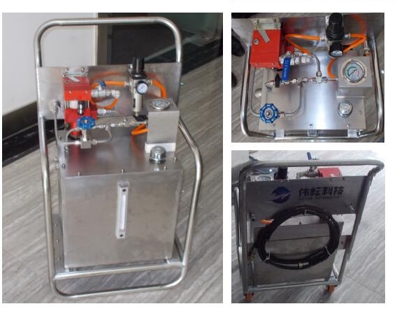 WY-8W-J0型便攜式水加壓系統是以壓縮空氣作為動力源,適用于電氣行業油冷板、水冷板通道壓力測試。其具備結構小巧,移動方便,使用安全等特點。增壓泵、閥門之間采用不銹鋼高壓管連接,能夠在室內、野外等各種惡劣環境工作,增壓泵采用壓縮空氣作為動力源,能夠有效的防范漏電作業安全。
